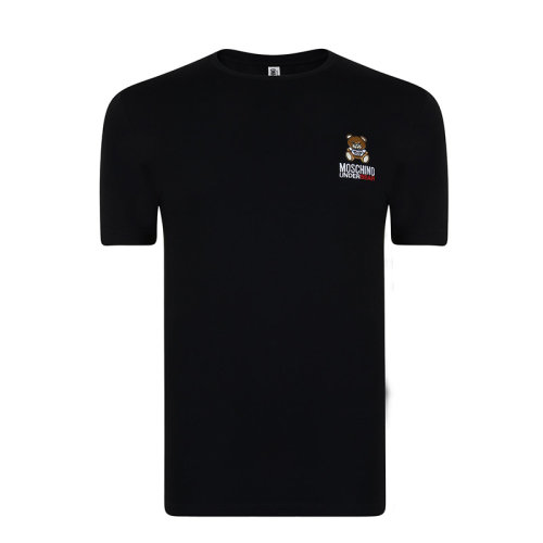 MOSCHINO/莫斯奇诺 黑色棉质刺绣泰迪熊logo男士短袖T恤 A1905 8133 555