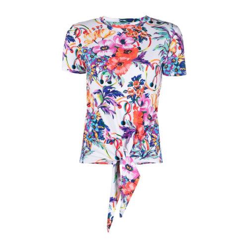 MOSCHINO 莫斯奇诺 女士 服装 圆领彩色印花短袖系带棉质T恤 女士短袖T恤