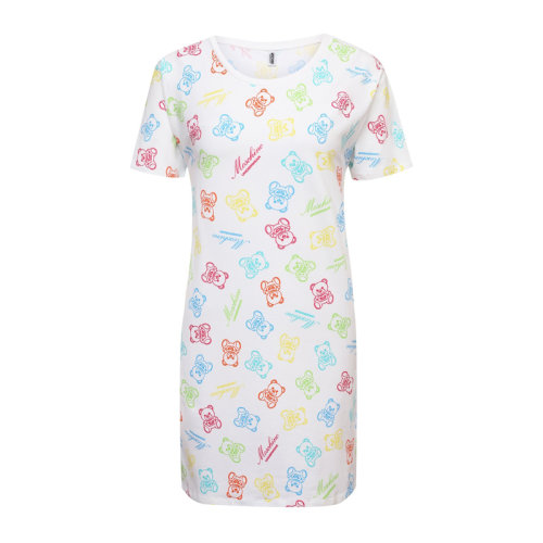 MOSCHINO 莫斯奇诺 女士 服装 圆领彩色小熊印花短袖长款T恤 女士短袖T恤