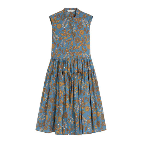 MaxMara/麦丝玛拉 22年早春新款 LORA系列 女士蓝色纯棉府绸花朵印花无袖连衣裙9221132106002