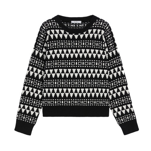 MaxMara/麦丝玛拉 22年秋冬新款 GABBIA系列 女士黑色/白色羊毛和羊绒混纺民族提花图案针织衫毛衣1366192306022