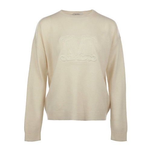 MaxMara/麦丝玛拉 【22秋冬新款】 女士山羊绒圆领长袖针织衫羊绒衫毛衣米色徽标图案 13661029 BIMBA