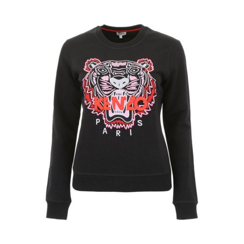 Kenzo/高田贤三 女士黑色棉质经典字母徽标虎纹刺绣装饰圆领长袖上衣卫衣运动衫套头衫 FB62SW8244XA-99