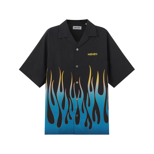 KENZO/高田贤三 【22春夏新款】 男士棉质宽松版休闲短袖衬衫外套火焰印花 FC5 5CH140 9S6
