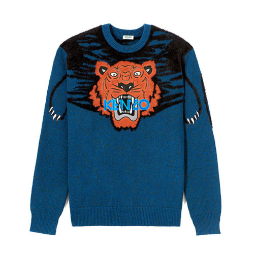 KENZO/高田贤三 凯卓男装 经典虎头图案 男士蓝色棉质时尚圆领秋冬针织衫/毛衣 F865PU2513XA.53