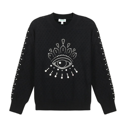 KENZO/高田贤三 女士针织衫/毛衣棉质仿珍珠装饰眼睛图案圆领长袖针织衫 2PU501 3XD