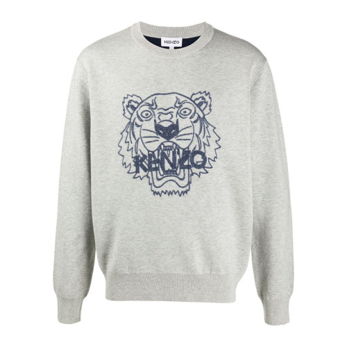 Kenzo 高田贤三 男装 服装 灰色羊毛经典虎头圆领 男士毛衣