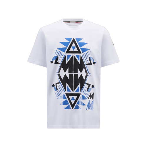 Moncler/蒙克莱 22年秋冬新款 男士光学白色纯棉图形图案短袖T恤H20918C000118390T001