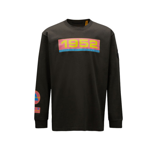 Moncler/蒙克莱 22年秋冬新款 1952系列 男士深灰色纯棉徽标印纹长袖T恤H20928D00004M2326950