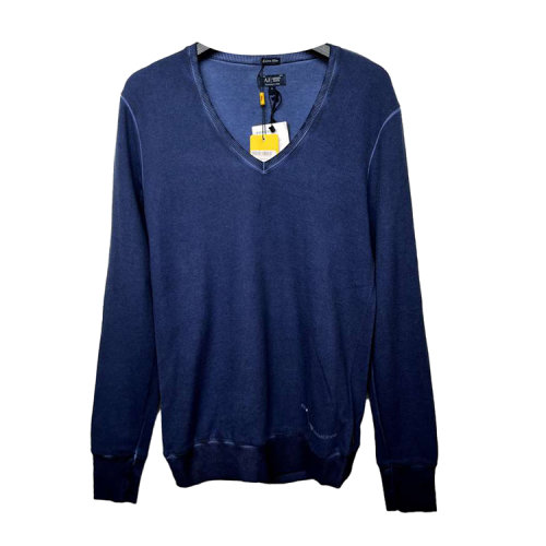 ARMANI JEANS/阿玛尼牛仔 蓝色做旧款鸡心领 长袖卫衣 Z6M37 KK