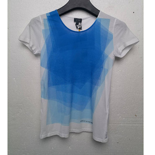 ARMANI JEANS/阿玛尼牛仔 白蓝拼色女士短袖T恤