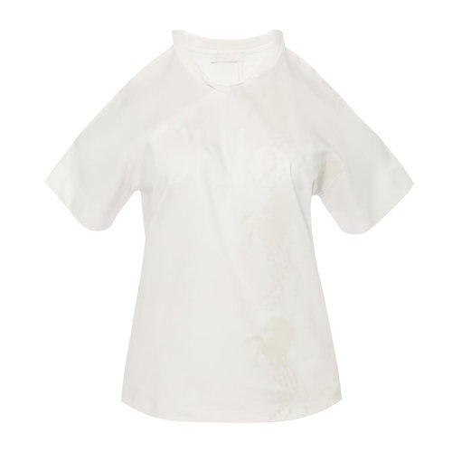 Chloe/克洛伊 女士白色棉质露肩印花短袖T恤