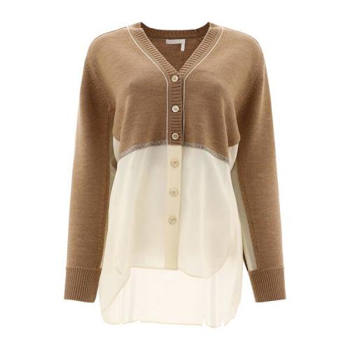 Chloe/克洛伊 女装 服装 棕色羊毛拼接斗篷 女士大衣