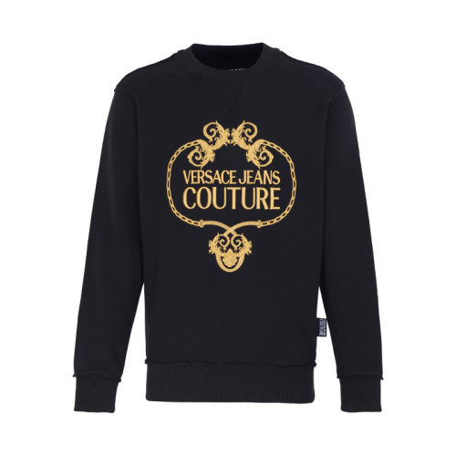 VERSACE JEANS/范思哲牛仔 男士黑色棉质金字字母徽标刺绣印花装饰圆领长袖上衣卫衣套头衫 B7GUA7FN-36604-Y6A