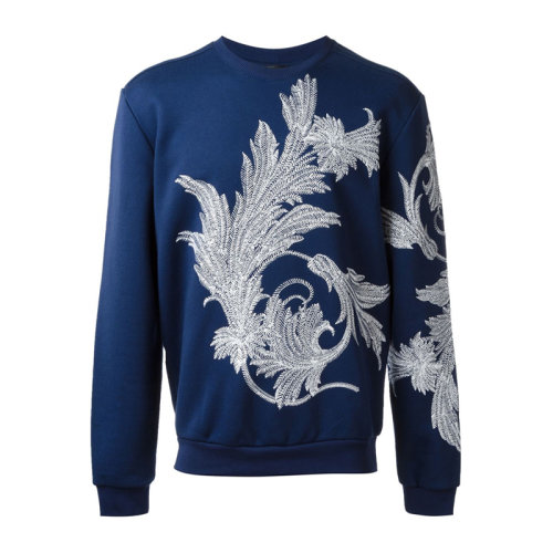 VERSACE JEANS/范思哲牛仔 男士蓝色棉质混纺面料叶子图案装饰圆领长袖上衣卫衣运动衫套头衫 A73532-A217891-A126