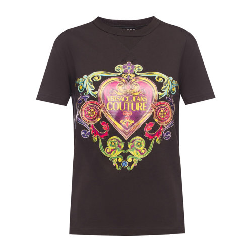VERSACE JEANS/范思哲牛仔 女士黑色棉质印花装饰圆领短袖上衣T恤 B2HVB7E0-30311-899