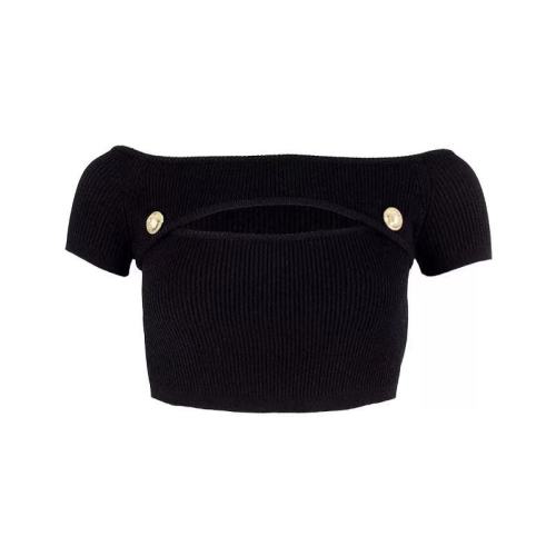 BALMAIN/巴尔曼 新款百搭短款露肩修身女士短袖T恤VF0AJ000K211 0PA