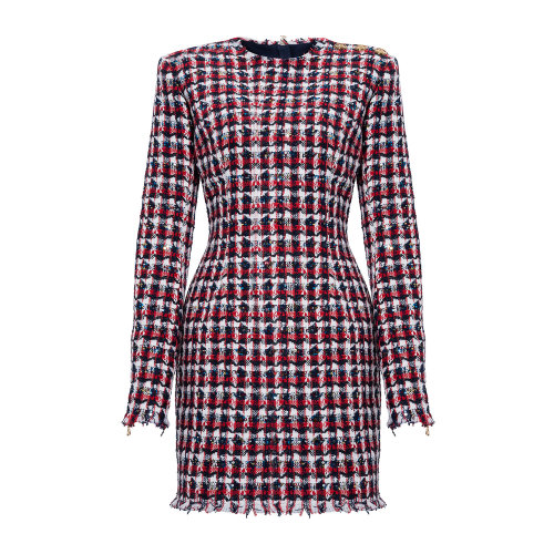 Balmain/巴尔曼 红色 女士千鸟格纹粗花呢连衣裙 UF06200C263 秋冬