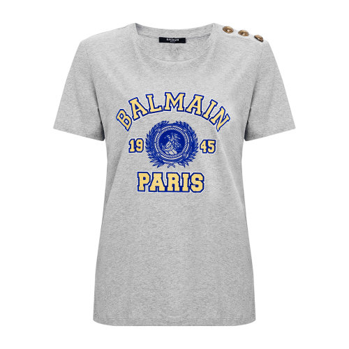 Balmain/巴尔曼 灰色 女士学院风徽标饰短袖T恤 UF01350I592 秋冬