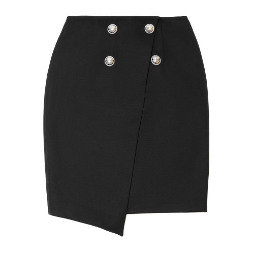 Balmain/巴尔曼 黑色 纽扣装饰不规则半身裙 春夏