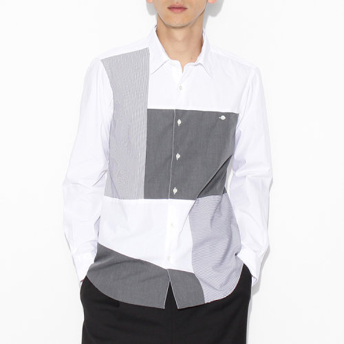 TAKEO KIKUCHI/菊池武夫男士长袖衬衫时尚拼布设计长袖 17082115(20-30个工作日送达)