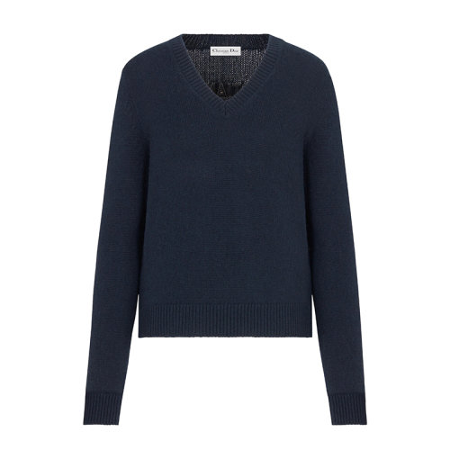 DIOR/迪奥 22年春夏新款 女士蓝色纯羊绒Logo刺绣长袖针织衫毛衣144S47AM002_X5620