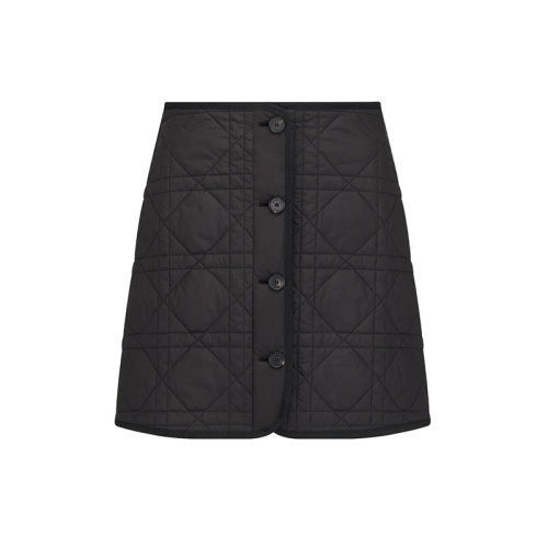 DIOR/迪奥 22年早春新款 女士黑色涤纶绗缝塔夫绸科技面料超大藤格纹图案迷你裙短裙227J88A2827_X9000