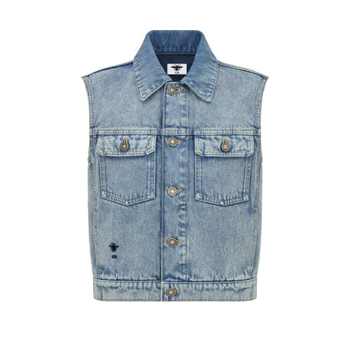 DIOR/迪奥 22年春夏新款 女士蓝色纯棉牛仔布无袖夹克牛仔外套222G01A3518_X5894
