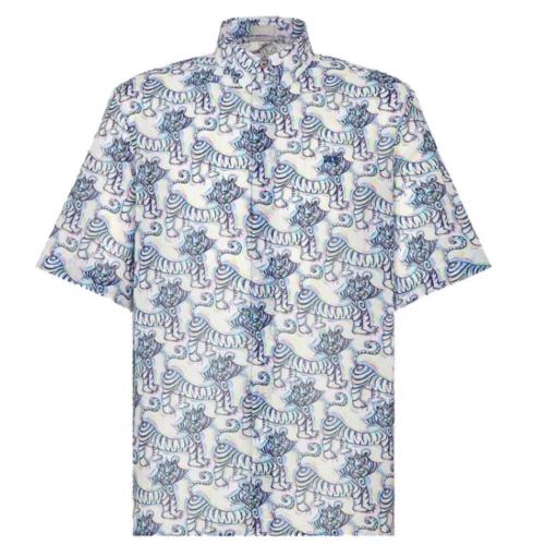DIOR/迪奥 新款 DIOR AND KENNY SCHARF联名限量款系列 男士老虎纹五彩棉布短袖衬衫193C545B5252_C075【主推】