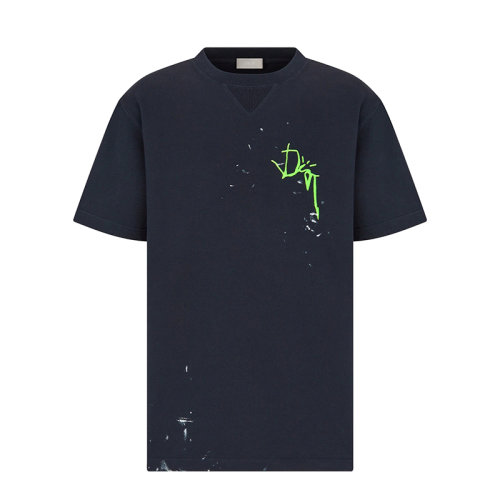 DIOR/迪奥 22年秋冬新款 CACTUS JACK DIOR系列 男士超大版型海军蓝纯棉饰彩绘染色印花圆领短袖T恤283J685B0554_C580