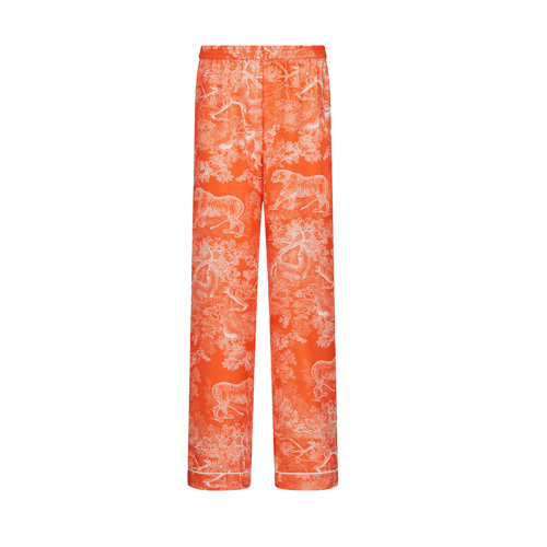 DIOR/迪奥 DIORIVIERA系列 22年秋冬新款 女士荧光橙色桑蚕丝斜纹面料Reverse茹伊印花长裤241P30F6621_X2826