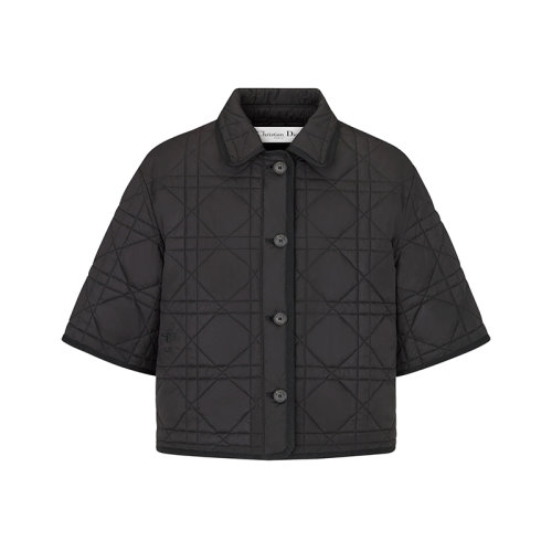 DIOR/迪奥 22年早春新款 女士黑色涤纶绗缝塔夫绸科技面料超大藤格纹图案短袖衬衫式外套夹克227B69A2827_X9000