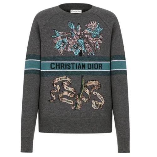 DIOR/迪奥 新款圣经花朵图案的灰色技术羊绒提花 女士毛衣114S55A M150 8851【主推】
