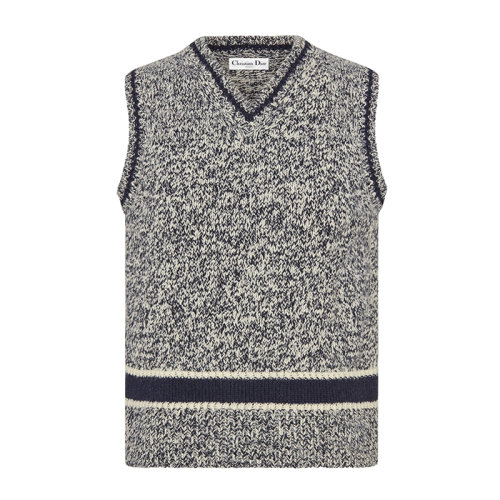 DIOR/迪奥 2021年早春新款 蓝色和灰色穆林羊毛和羊绒 女士无袖V领毛衣054T01AM303_X5810