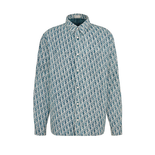 DIOR/迪奥 22年早春新款 男士蓝色纯棉牛仔布白色Kasuri老花印花衬衫外套013D585BY989_C580