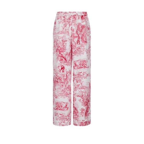 DIOR/迪奥 22年早春新款 CHEZ MOI系列 女士白色/红色桑蚕丝斜纹茹伊印花长裤221P30A6805_X0817