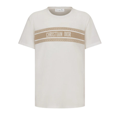 DIOR/迪奥 22年早春新款 女士白色棉质混纺拼金色金属光泽线LOGO短袖T恤213T04A4494_X1998