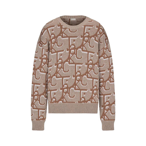 DIOR/迪奥 22年秋冬新款 CACTUS JACK DIOR系列 男士超大版型米色/棕色山羊绒饰Oblique印花罗纹圆领长袖针织衫283M663AT358_C180