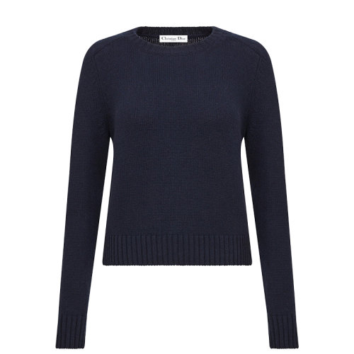 DIOR/迪奥 22年春夏新款 女士蓝色纯羊绒Logo刺绣长袖修身针织衫毛衣144S76AM002_X5620