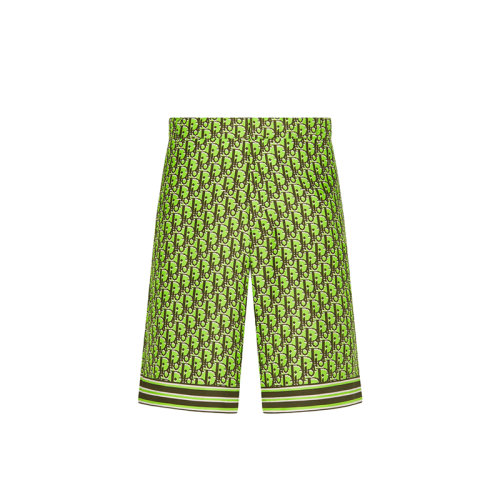DIOR/迪奥 22年早春新款 男士荧光绿色/卡其色桑蚕丝斜纹面料老花印花短裤013C121A4751_C686