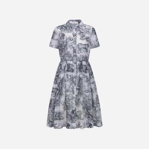 DIOR/迪奥 22年早春新款 女士海军蓝色纯棉薄纱Reverse茹伊印花长款衬衫221B54A3846_X5813