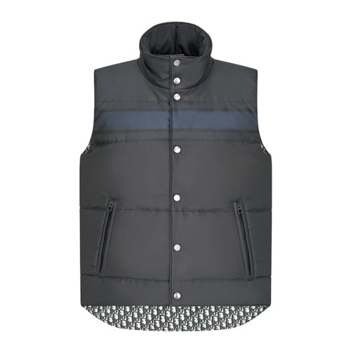 DIOR/迪奥 女士蓝色和米白色绗缝科技塔夫绸老花图案双面无袖羽绒夹克147C32A2968_X5803