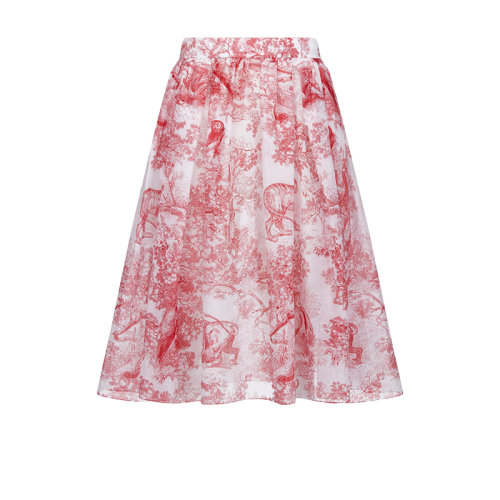 DIOR/迪奥 22年春夏新款 女士红色纯棉薄纱茹伊印花喇叭半身裙221J90A3802_X0817