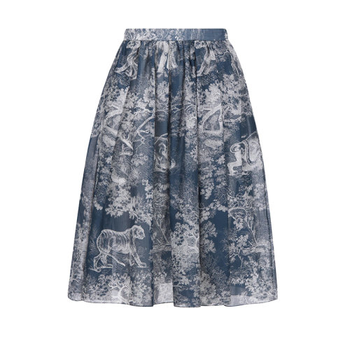 DIOR/迪奥 22年早春新款 女士海军蓝色纯棉薄纱Reverse茹伊印花喇叭半身裙伞裙221J90A3846_X5813