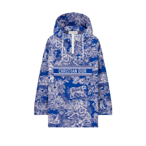 DIOR/迪奥 22年秋冬新款 女士湖蓝色塔夫绸科技提花面料Reverse茹伊印花连帽厚夹克外套027C10A2826_X5882