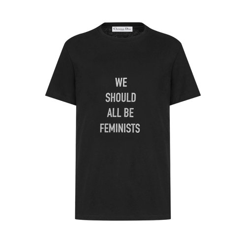 DIOR/迪奥 22年早春新款 女士黑色棉麻针织面料女权主义印花短袖T恤213T03TA001_X9000