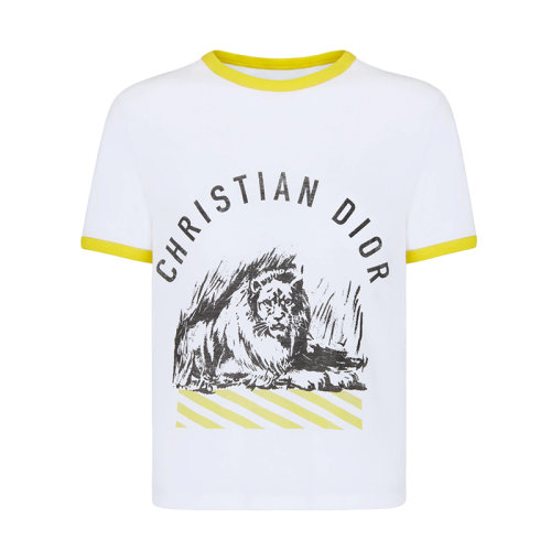 DIOR/迪奥 22年春夏新款 女士白色/荧光黄色纯棉D-Jungle Pop图案短袖T恤223T18A4499_X2804