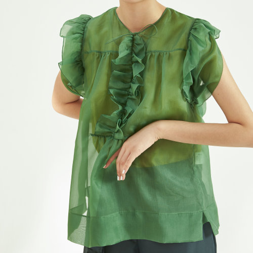 nisiss/怡夕荷叶边装饰镂空衣袖上衣女装定制Y158AF06