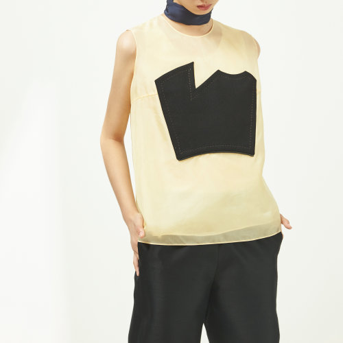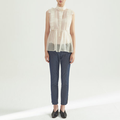 nisiss/怡夕柯根纱压褶拼接立领无袖上衣女装定制N112XF07