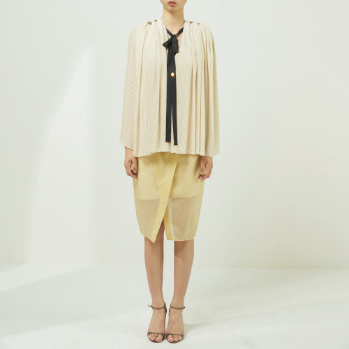 nisiss/怡夕百褶布系带式垫肩斗篷女装定制n162aj01